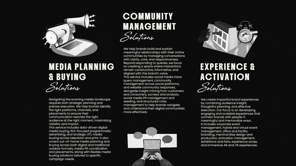 That belief drives us to explore new ideas, industries, and perspectives. From entertainment and culture to FinTech, FMCG, and emerging D2C brands, we collaborate with organizations that are ready to grow, adapt, and challenge conventions.